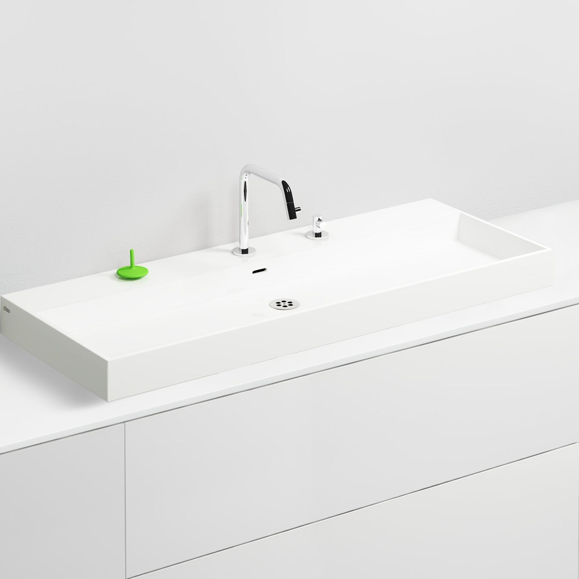 Clou Wash Me wastafel 110x42cm zonder plug mineraalsteen Wit