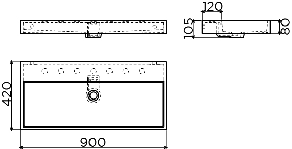 KraangatenDe wastafel heeft 7 voorbewerkte kraangaten zodat naar keuze 1-, 2- of 3-gats kranen gemonteerd kunnen worden maar ook twee kranen. In de meegeleverde handleiding wordt uitgelegd hoe je een kraangat dient door te boren. Je kan echter ook kiezen om een wandkraan met deze wastafel te combineren. Dit maakt dat de wastafel nog beter te reinigen is.