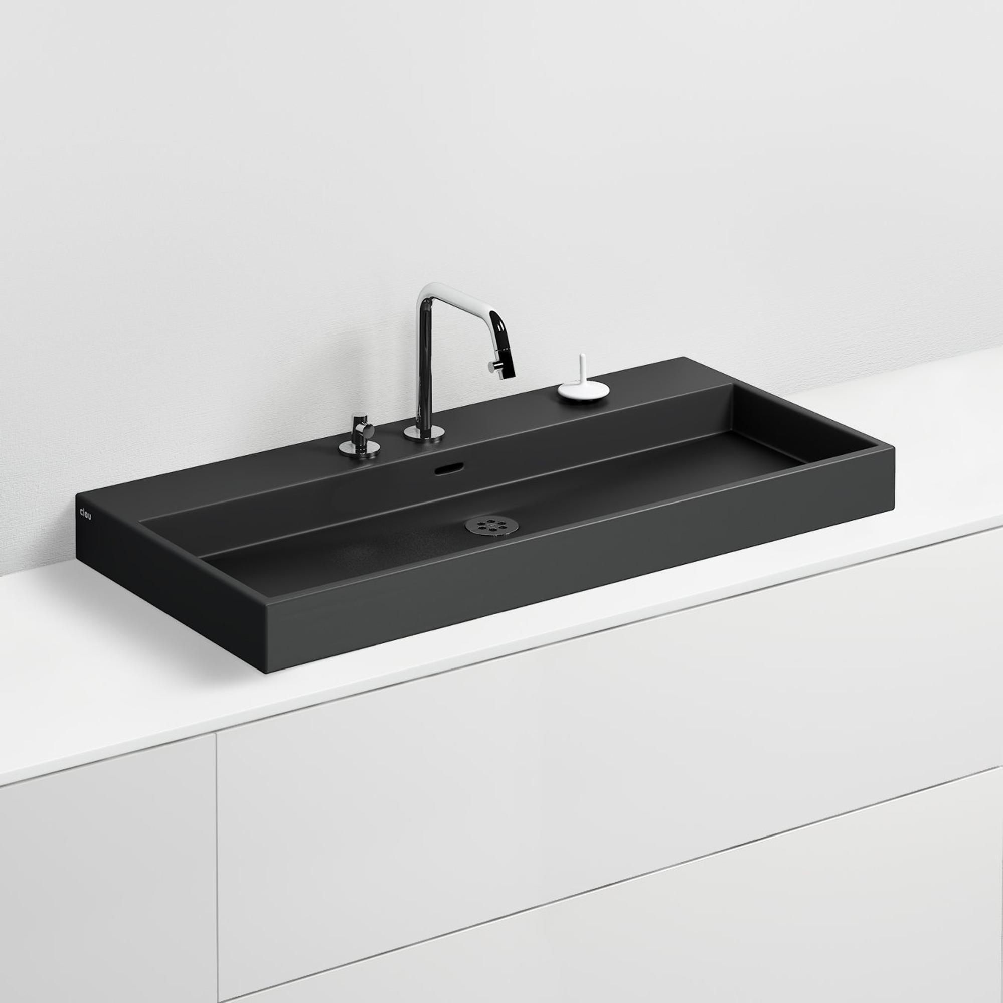 Clou Wash Me wastafel 90x42cm zonder plug Keramiek Zwart mat