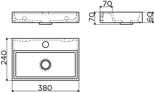 Voorbewerkte kraangatenDe wastafel heeft 3 voorbewerkte kraangaten zodat naar keuze 1-, 2- of 3-gats kranen gemonteerd kunnen worden. In de meegeleverde handleiding wordt uitgelegd hoe je een kraangat dient door te boren. Je kan echter ook kiezen om een wandkraan met deze wastafel te combineren. Dit maakt dat de wastafel nog beter te reinigen is.