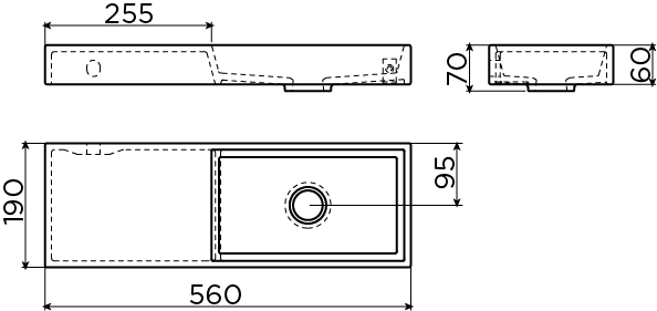 Clou Mini Wash Me fontein zonder kraangat en plug links wit keramiek B56xH6xD19cm