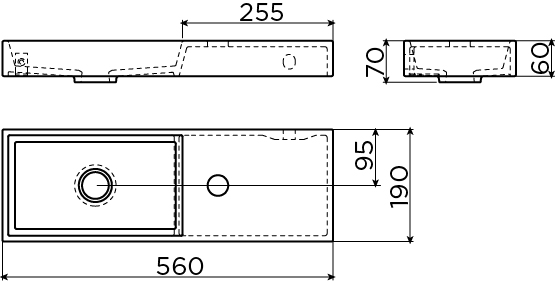 Clou Mini Wash Me fontein met kraangat rechts wit keramiek B56xH6xD19cm
