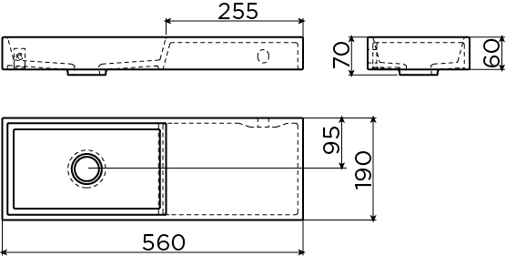 Clou Mini Wash Me fontein zonder kraangat en plug rechts wit keramiek B56xH6xD19cm
