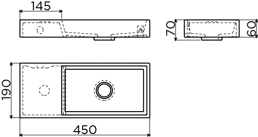 Clou Mini Wash Me fontein met voorbewerkt kraangat links mineral marmer B45xH6xD19cm