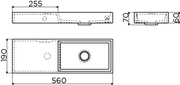 Clou Mini Wash Me fontein met voorbewerkt kraangat links aluite B56xH6xD19cm