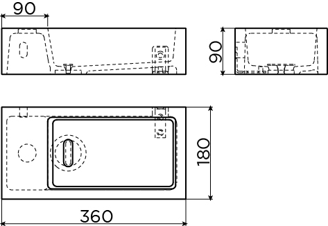 Clou Flush 3 fontein met voorbewerkt kraangat en plug links aluite B36xH9xD18cm