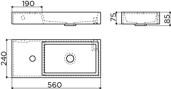 Clou Mini Wash Me Plus fontein met kraangat links wit keramiek B56xH7.5xD24cm