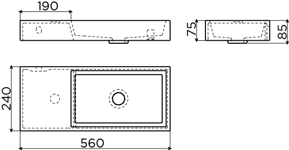 Clou Mini Wash Me Plus fontein met voorbewerkt kraangat links aluite B56xH7.5xD24cm