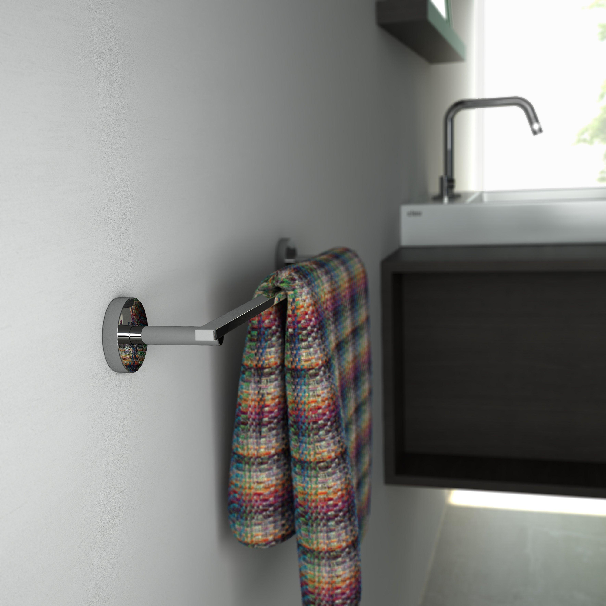 Een stijlvol handdoekrek uitgevoerd in de kleur chroom. Het rek is makkelijk te combineren met verschillende materialen en kleuren.