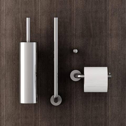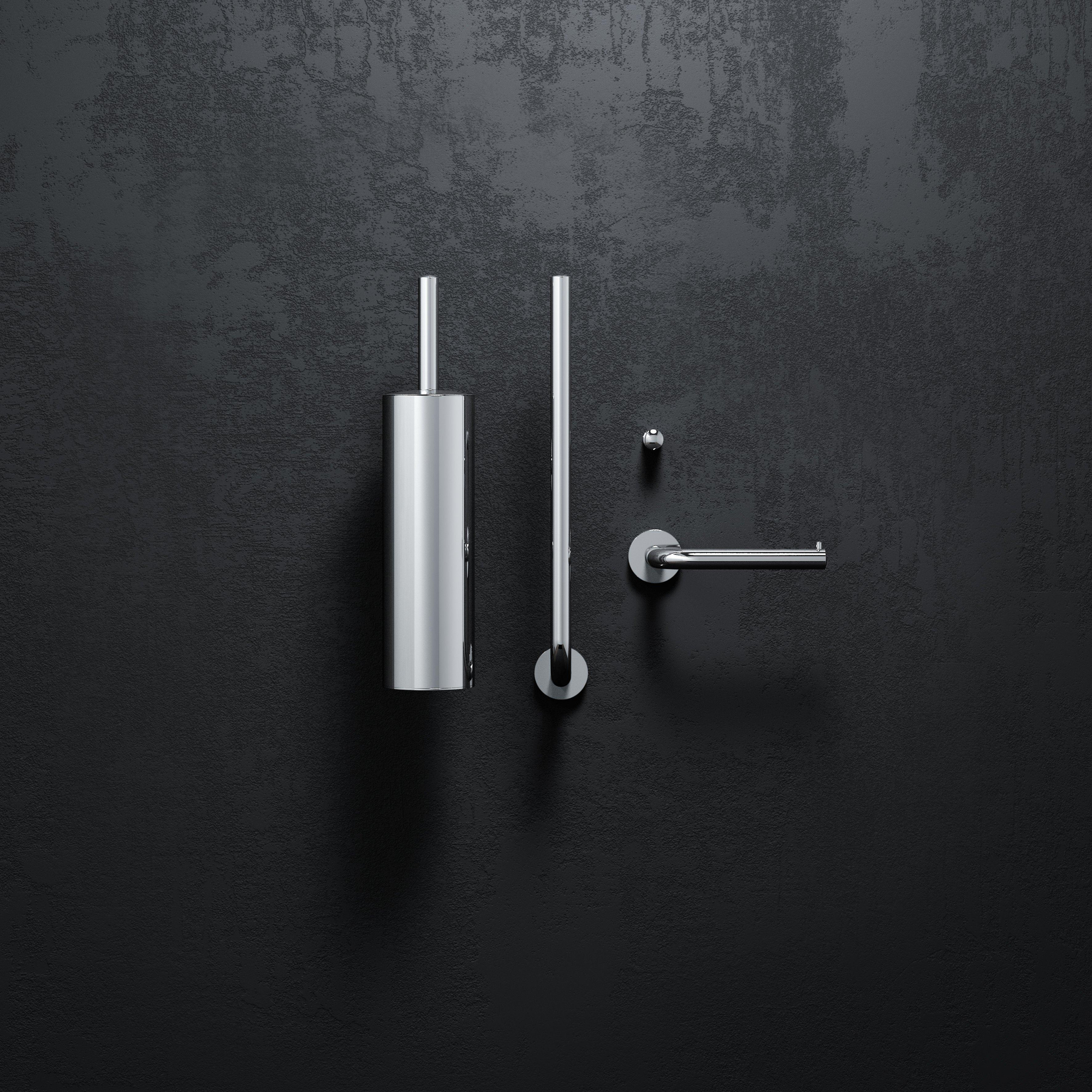 - De InBe handdoekhaak en reserverolhouder worden bevestigd met een metalen cilinder die is vastgeschroefd aan de muur. De handdoekhaak wordt op deze cilinder bevestigd en vastgezet met een stelschroef.