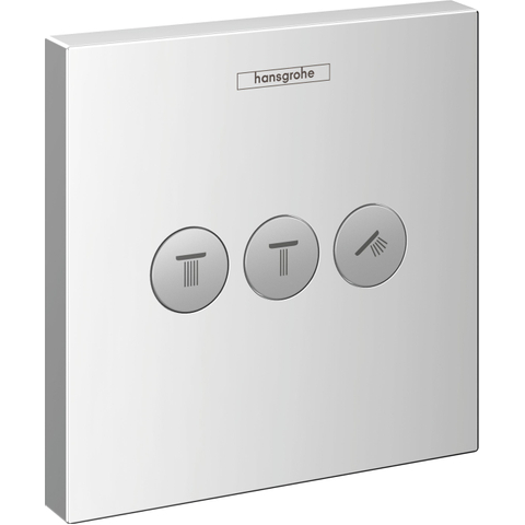 Het afbouwdeel ShowerSelect inbouw stopkraan voor drie functies zorgt voor fijne afwisseling van waterstralen tijdens het douchen. Het vierkante chromen plaatje met drie duidelijke functieknoppen combineert gebruiksvriendelijkheid met een overzichtelijk ontwerp.De verschillende functies kunnen tegelijkertijd gebruikt worden. Dit is geen enkel probleem met een maximaal vermogen van 43 liter water per minuut. Met de Select-knop zet je de douche aan of uit.Afbouwdeel ShowerSelect inbouw stopkraan voor drie functies. Je kunt verschillende functies gelijktijdig gebruiken. De kraan laat maximaal 43 water per minuut door. Je installeert de kraan met een apart te bestellen inbouwdeel. De drie verschillende functies kun je tegelijkertijd gebruiken. Zo geniet je van een ideale combinatie aan waterstralen en kun je de dag gemakkelijk aan.Je kiest eenvoudig voor je favoriete waterstraal of stralen met de overzichtelijke knoppen. Je kunt de verschillende functies gelijktijdig gebruiken. Het binnenwerk is gemaakt van duurzaam materiaal.