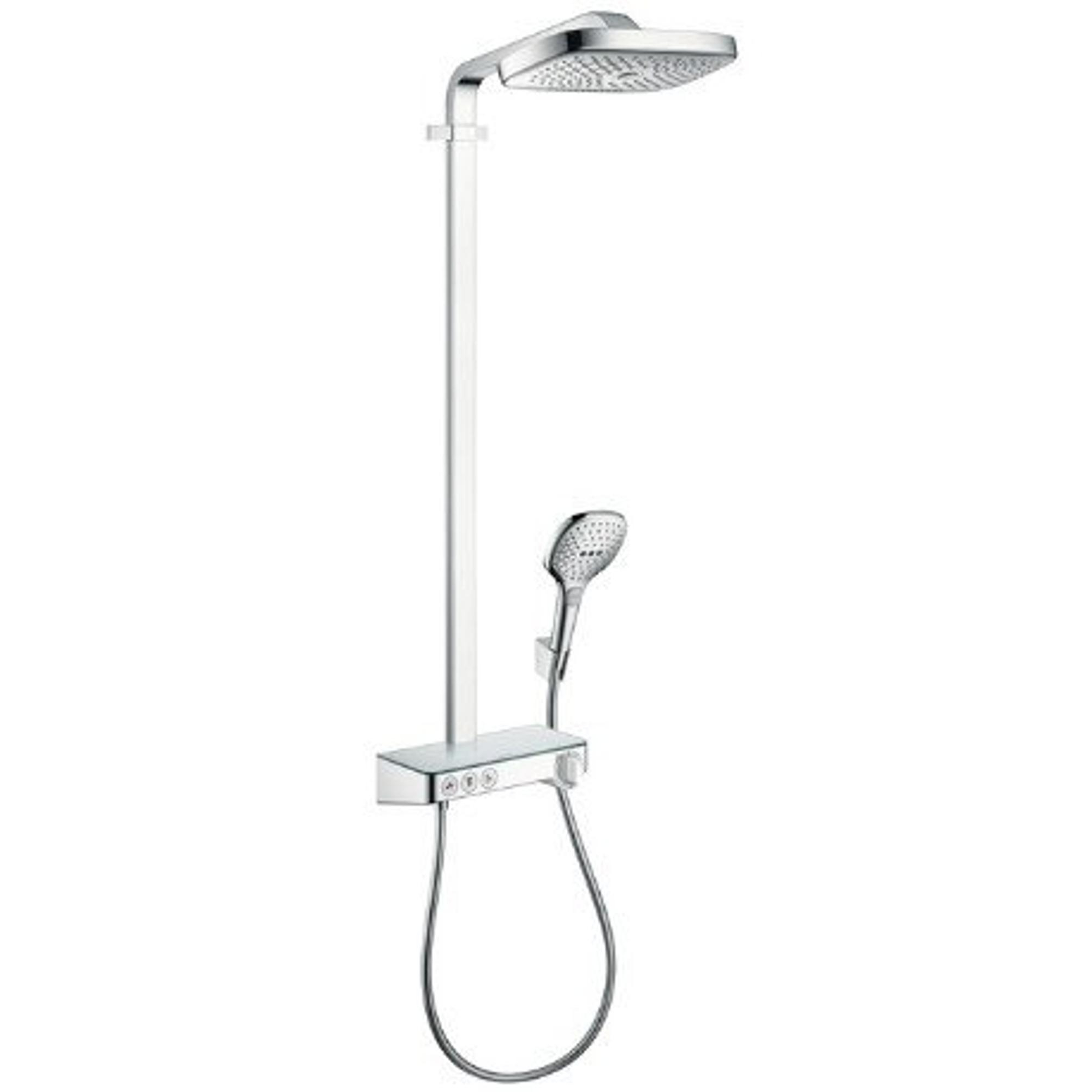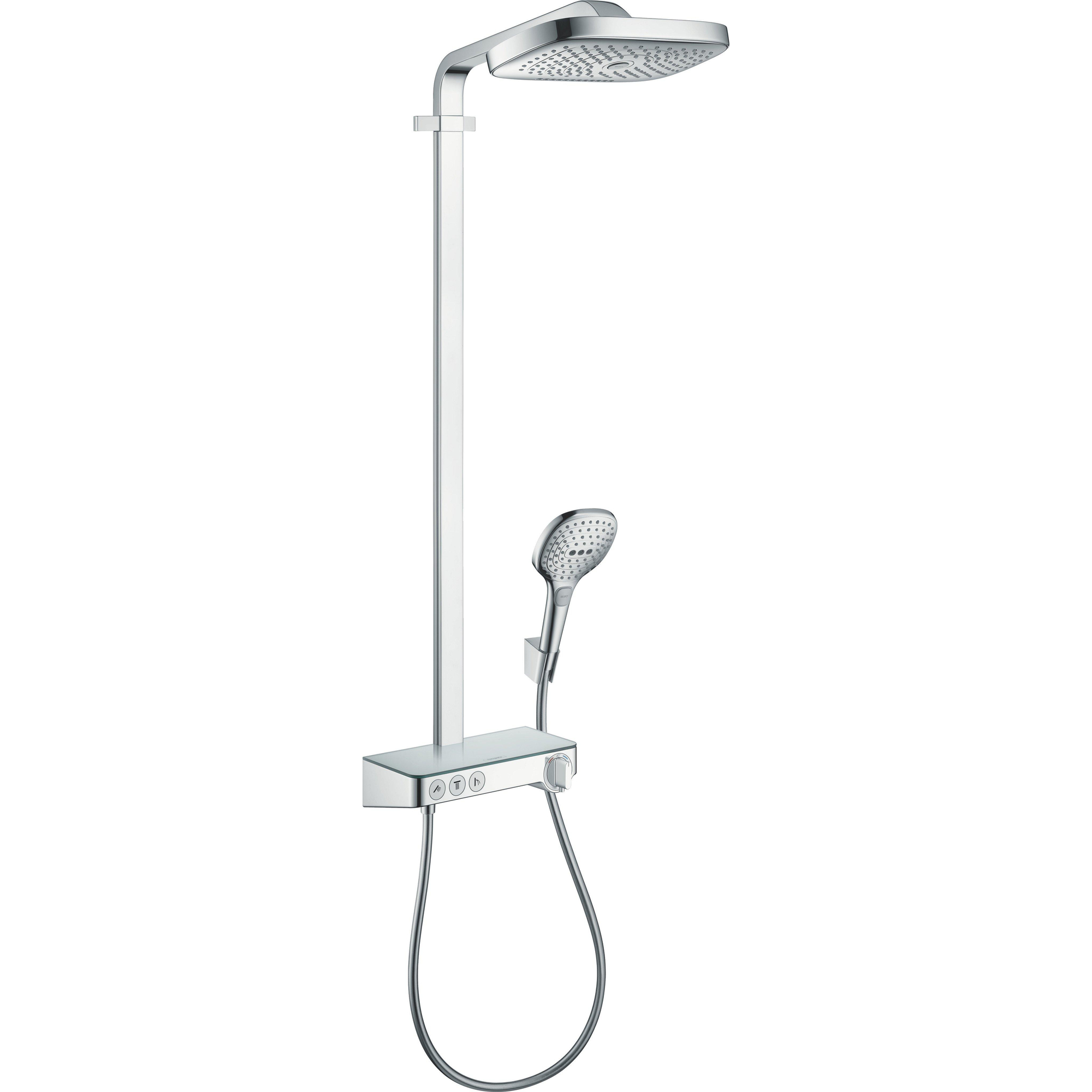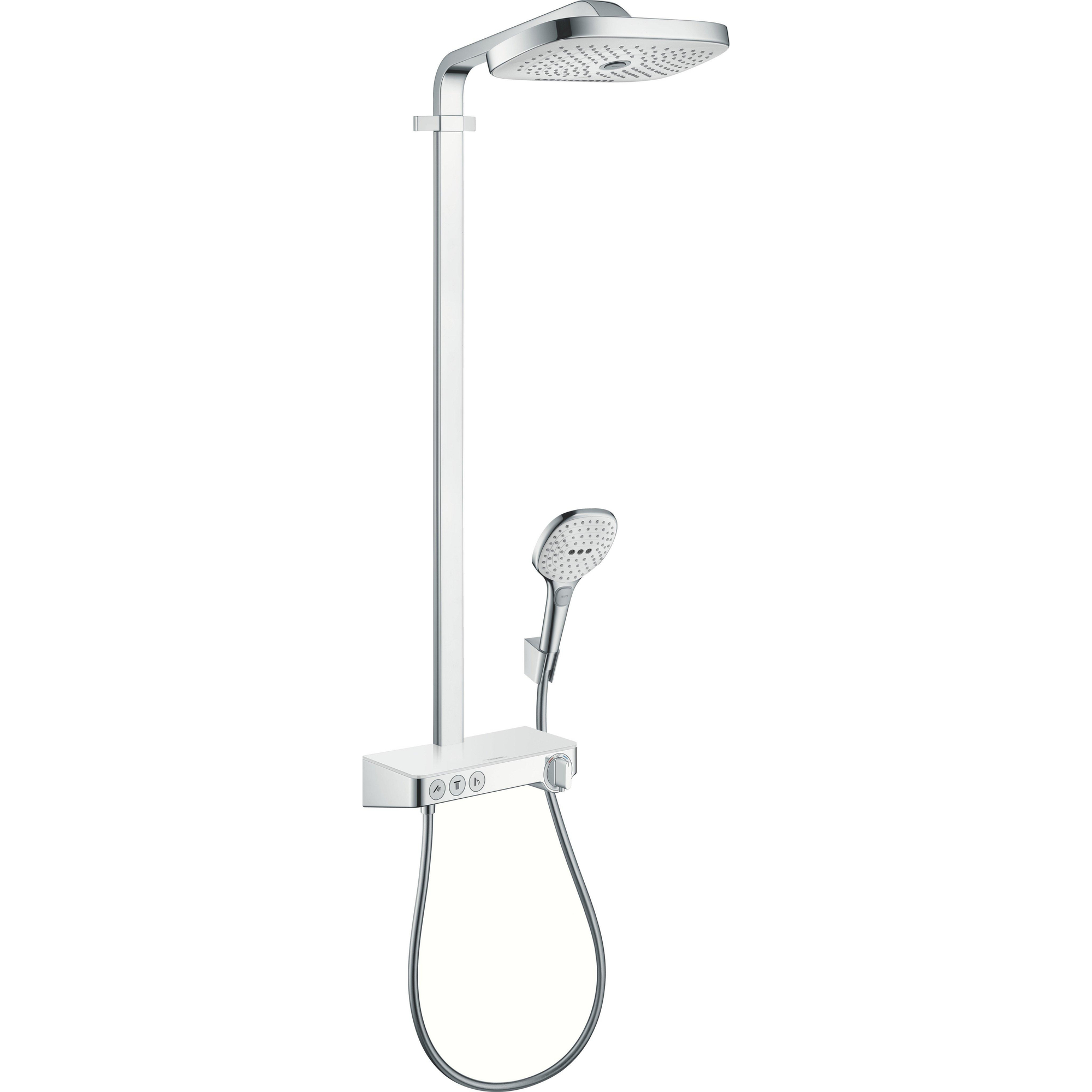 Hansgrohe Raindance Select E300 showerpipe: met Showertablet 300 opbouwkraan thermostatisch met handdouche 3jet en hoofddouche 3jet chroom