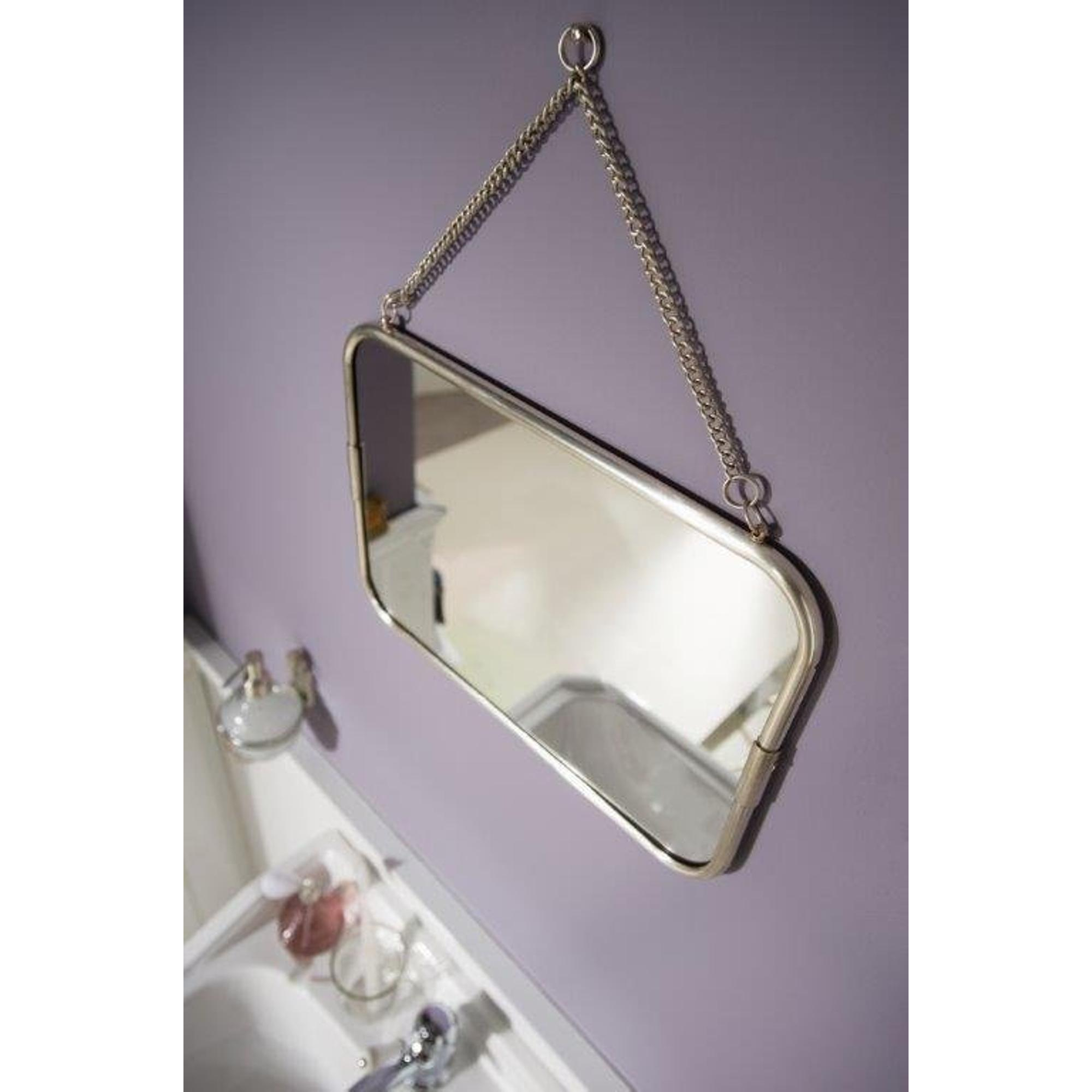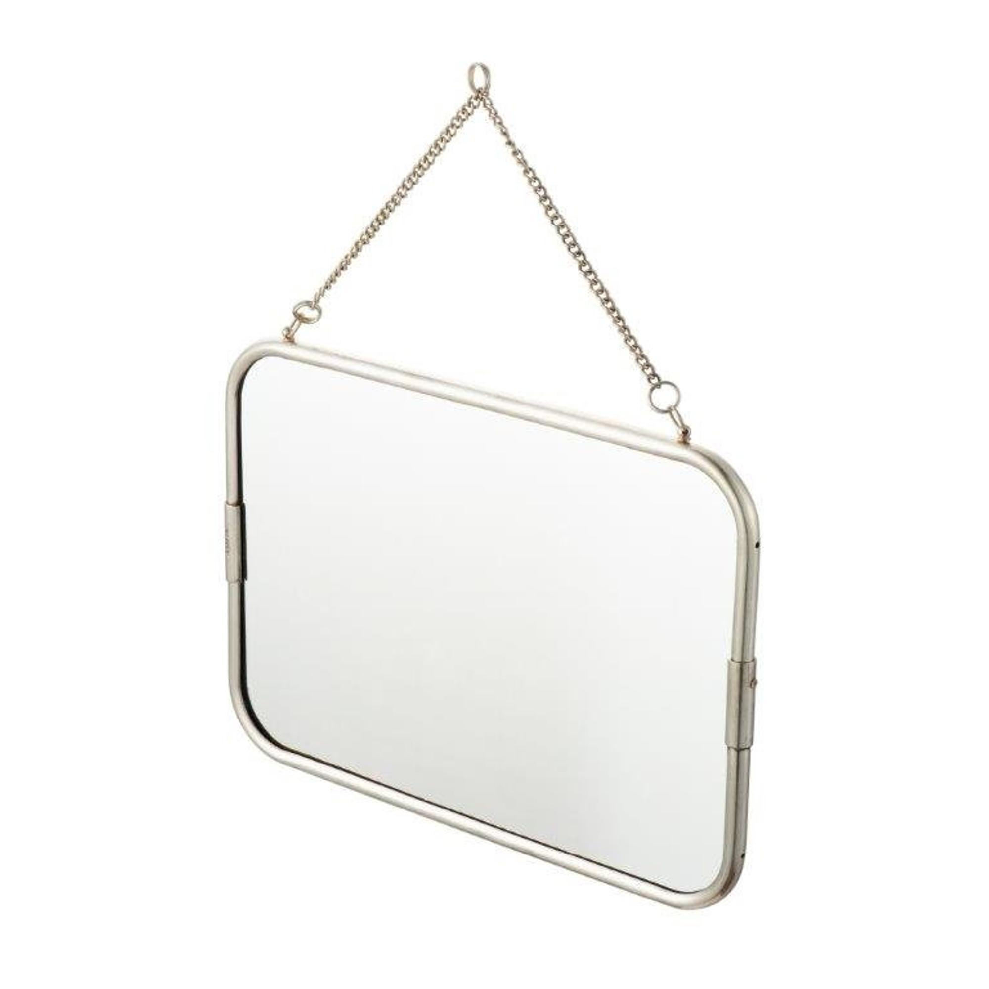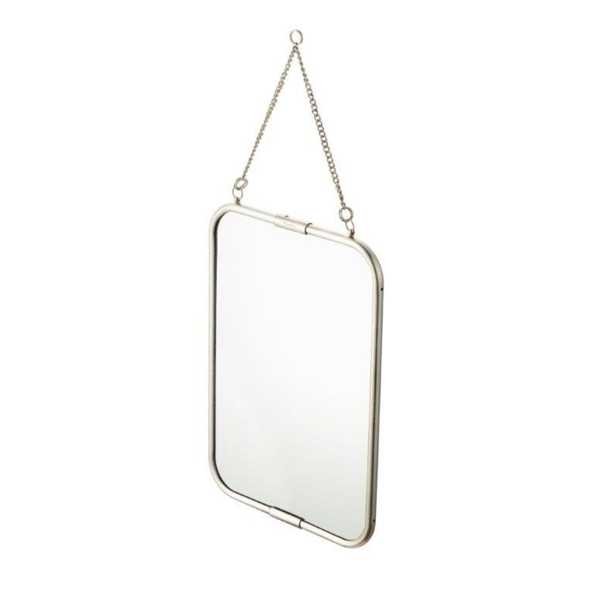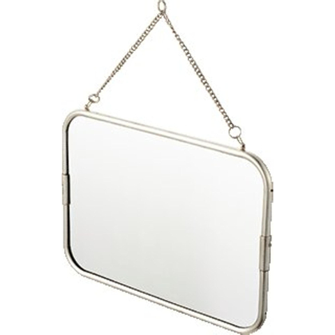 Prachtige spiegel van 40 bij 30 cm. U hangt hem op aan een fraaie ketting en u bepaalt zelf of u kiest voor een hoog of een breed model. Een opvallend fraaie verschijning in uw toilet, badkamer of als extra make-upspiegel.