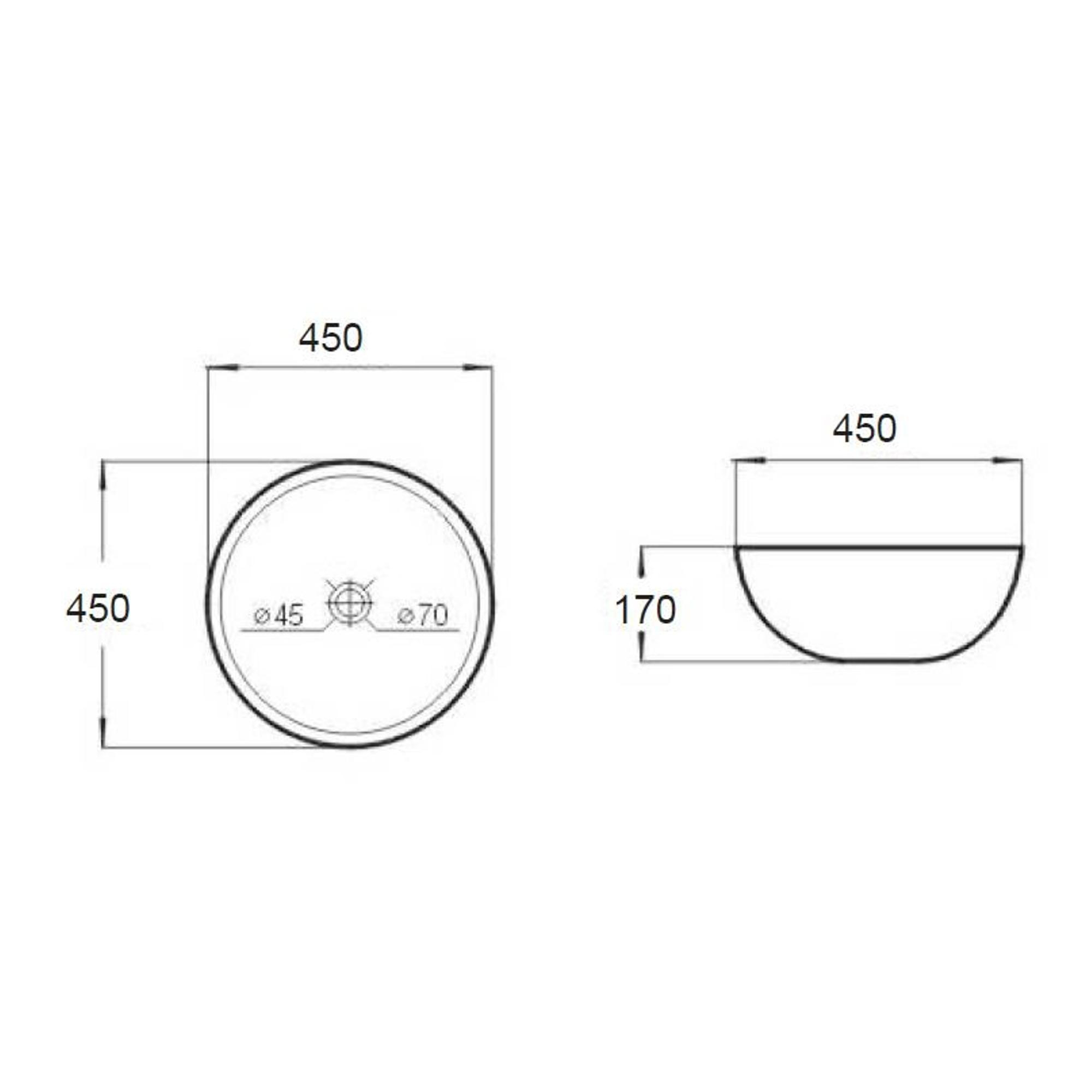 Best Design Class waskom 45x45x17cm rond 1 kraangat wit
