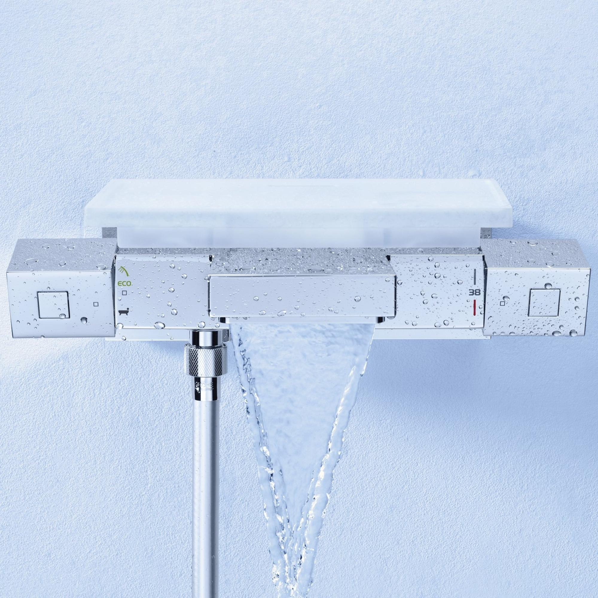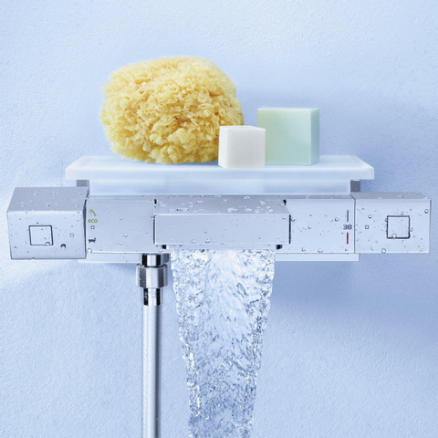 GROHE Grohtherm Cube thermostatische badkraan – Functioneel design voor comfort in bad Beauty. De nieuwe minimalistische Grohtherm Cube thermostaatkranen serie is de nieuwe standaard voor de kubistische badkamer. Afgestemd op de huidige interieurtrends biedt Grohtherm Cube geavanceerde, kubistische producten voor een betaalbare prijs. Brains. Grohtherm Cube is uitgerust met de meest geavanceerde cartouches in de sanitairindustrie; de basis voor de GROHE TurboStat® technologie. Door de gevoeligheid van het thermo-element te vergroten, reageren onze thermostaatkranen twee keer zo snel als voorheen op schommelingen in de waterdruk. Douchen en badderen wordt zo nog veiliger.