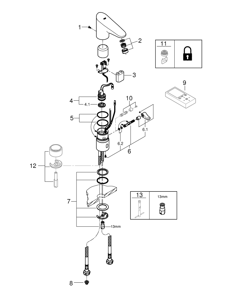 GROHE Europlus E waterbesparende wastafelkraan infrarood met menging met batterijvoeding 6V chroom