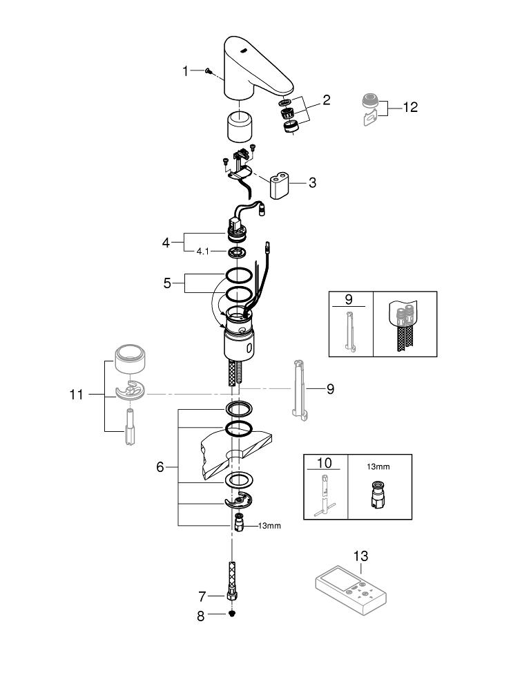 GROHE Europlus E waterbesparende wastafelkraan infrarood zonder menging met batterijvoeding 6V chroom