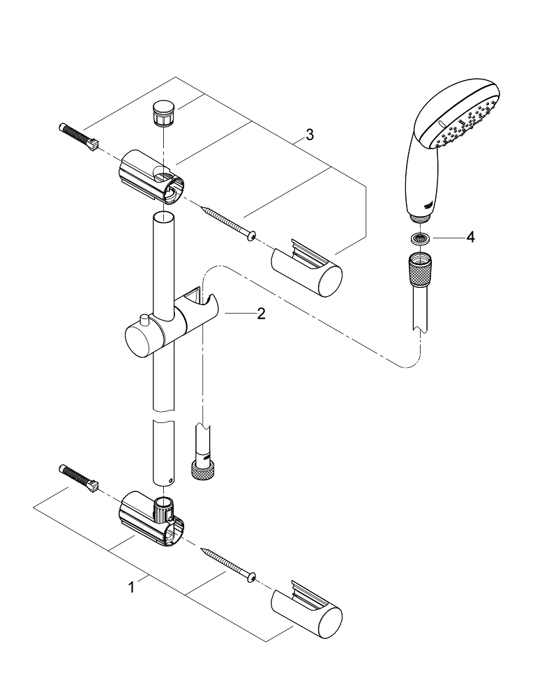 GROHE FastFixation: verstelbare afstand van de bovenste glijstangbevestiging voor montage in bestaande boorgaten