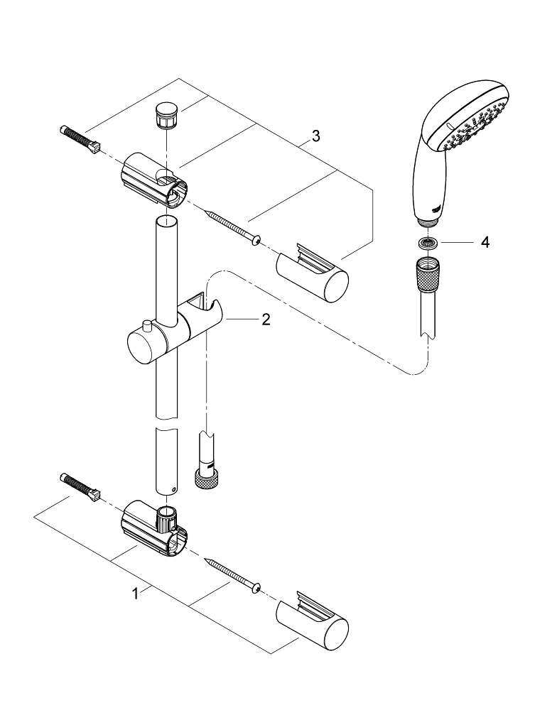 GROHE FastFixation: verstelbare afstand van de bovenste glijstangbevestiging voor montage in bestaande boorgaten