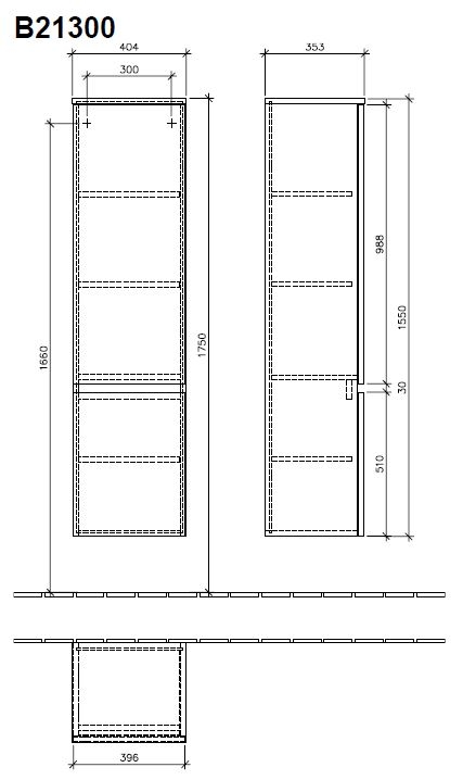 Villeroy & Boch Legato hoge kast met 2 deuren 155x40x35cm links glanswit