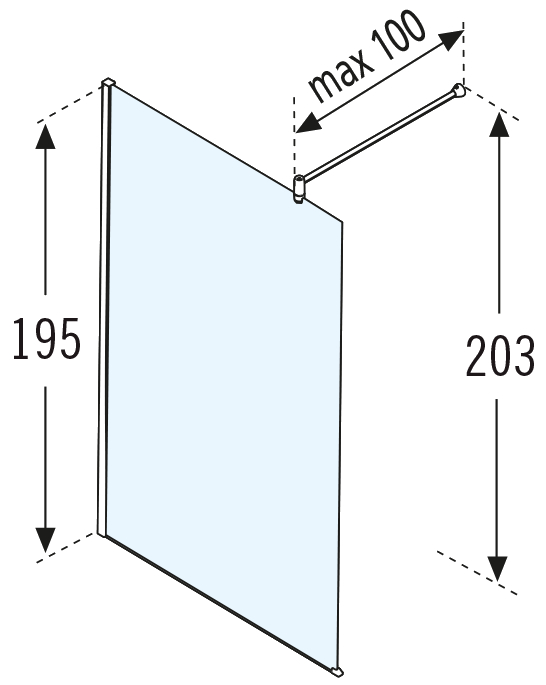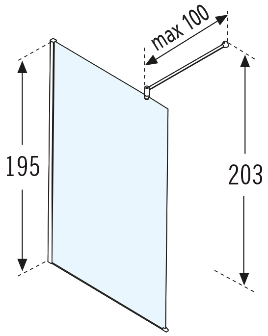 Novellini Lunes inloopdouche H 118 120x195cm met muursteun 100cm mat chroom profiel en helder glas LUNESH1201B