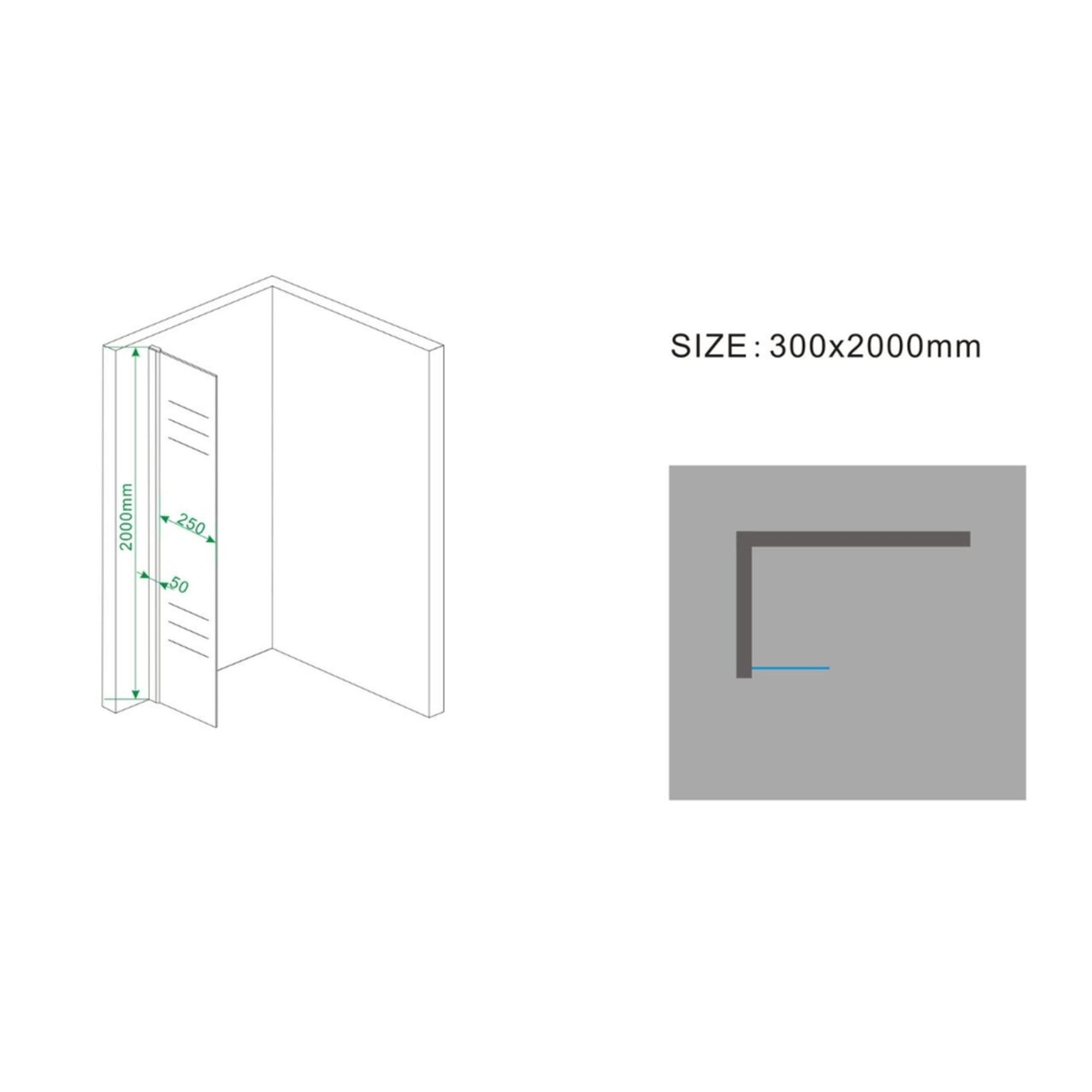 Wiesbaden Comfort zijwand met muurprofiel 300 x 2000 x 10 mm nano helder glas/chroom