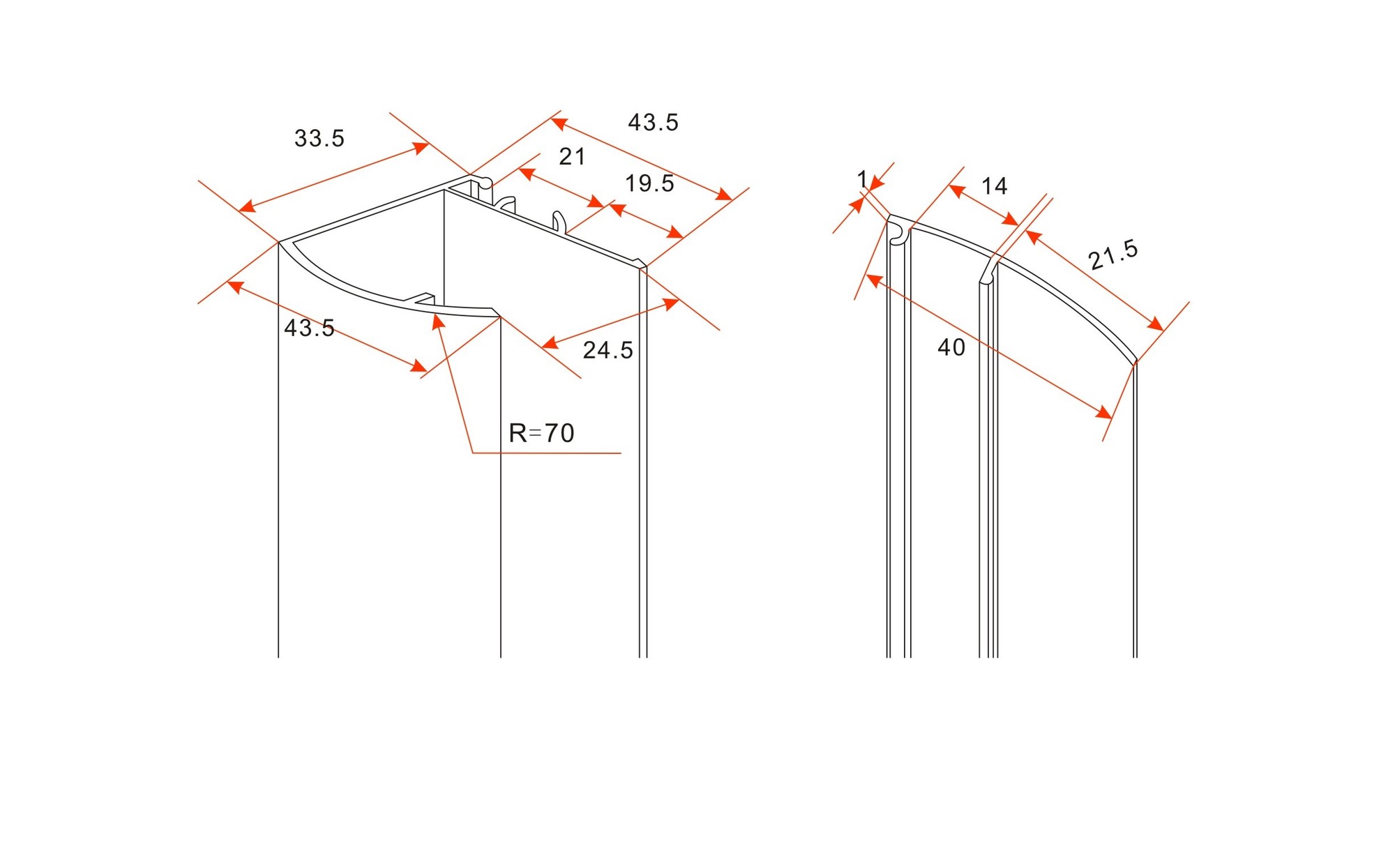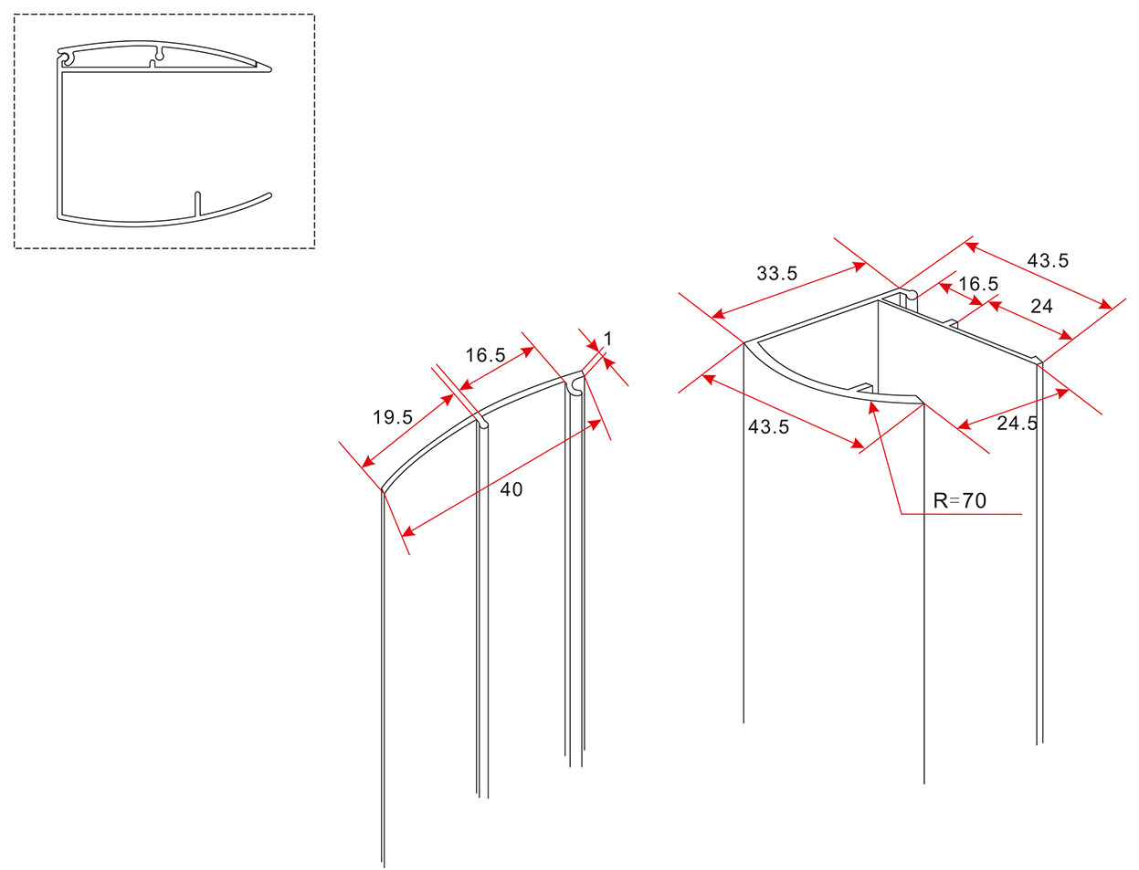 Wiesbaden chroom muurprofiel glaswand dikte 1cm L=200cm