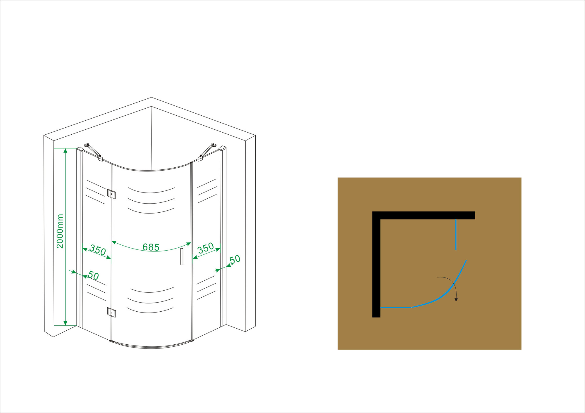 Links scharnierend en 200cm hoog inclusief 2 chroom wand profielen welke 20mm aan beide zijden verstelbaar zijn.