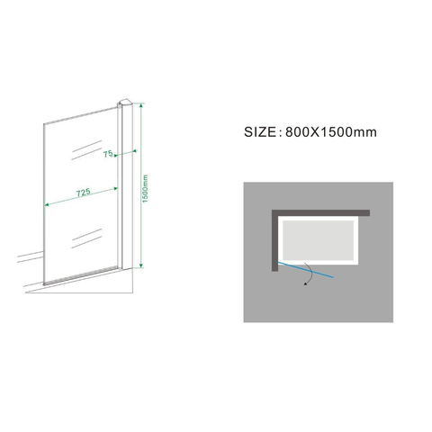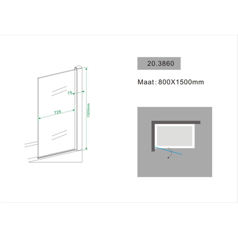 Wiesbaden Palmo badwand draaibaar 800 x 1500 x 6 mm nano helder glas/chroom