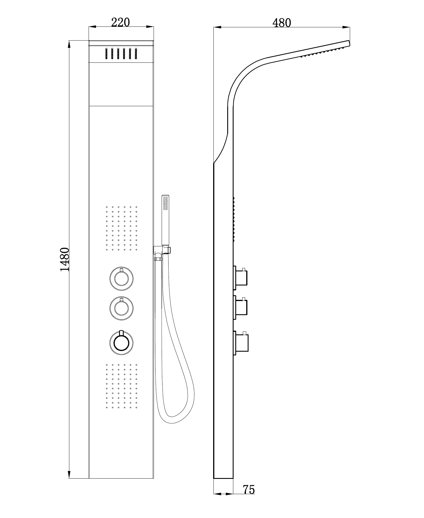 Xellanz Erie thermostatische douchekolom 148x22 cm RVS