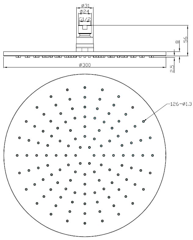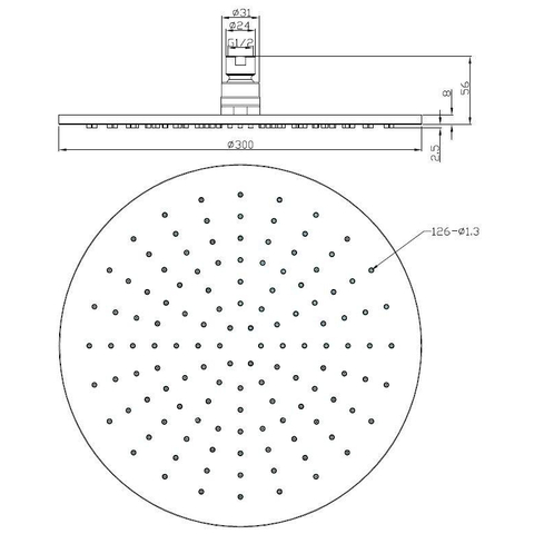 Wiesbaden Caral hoofddouche rond 30 x 0,8 cm chroom