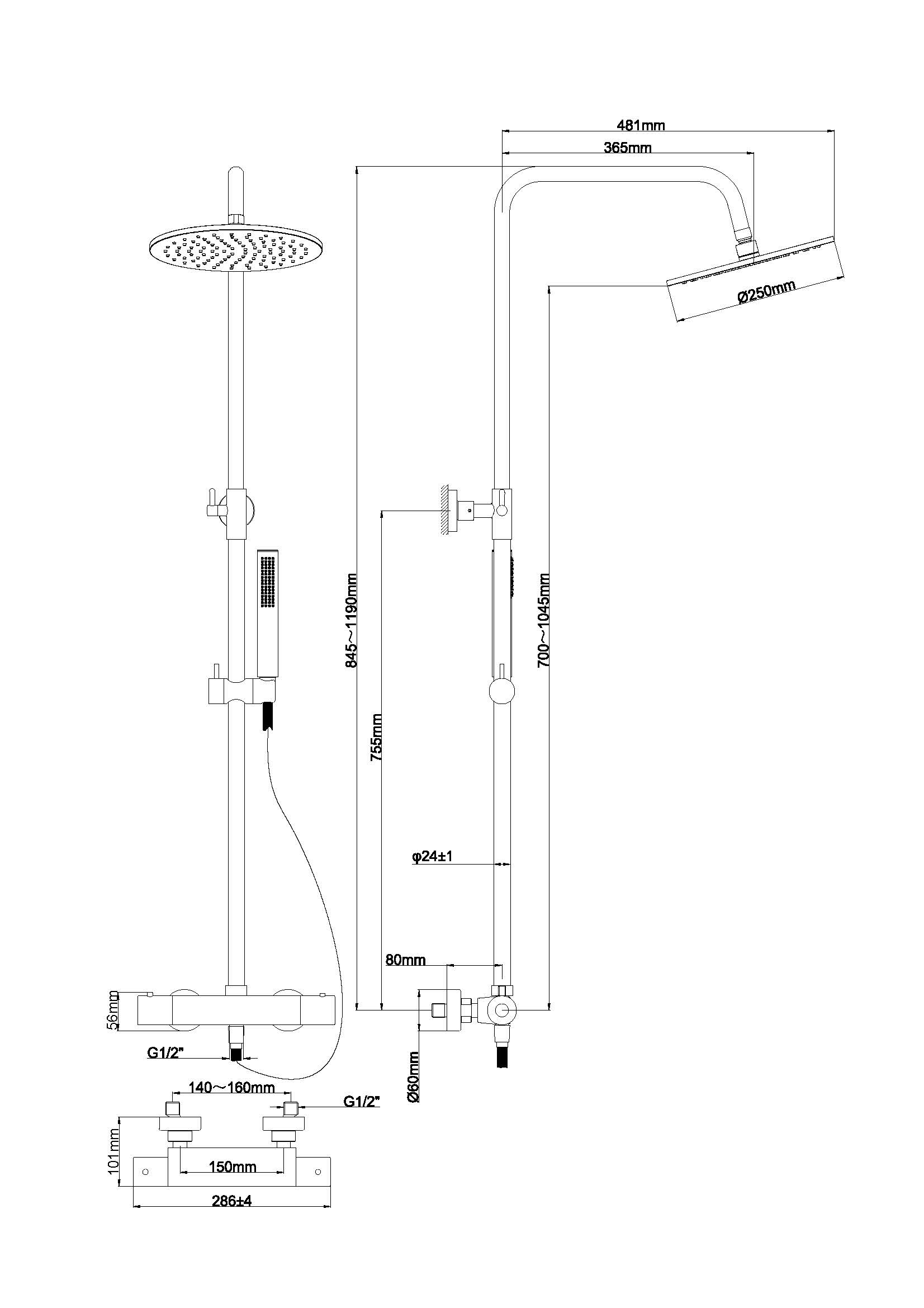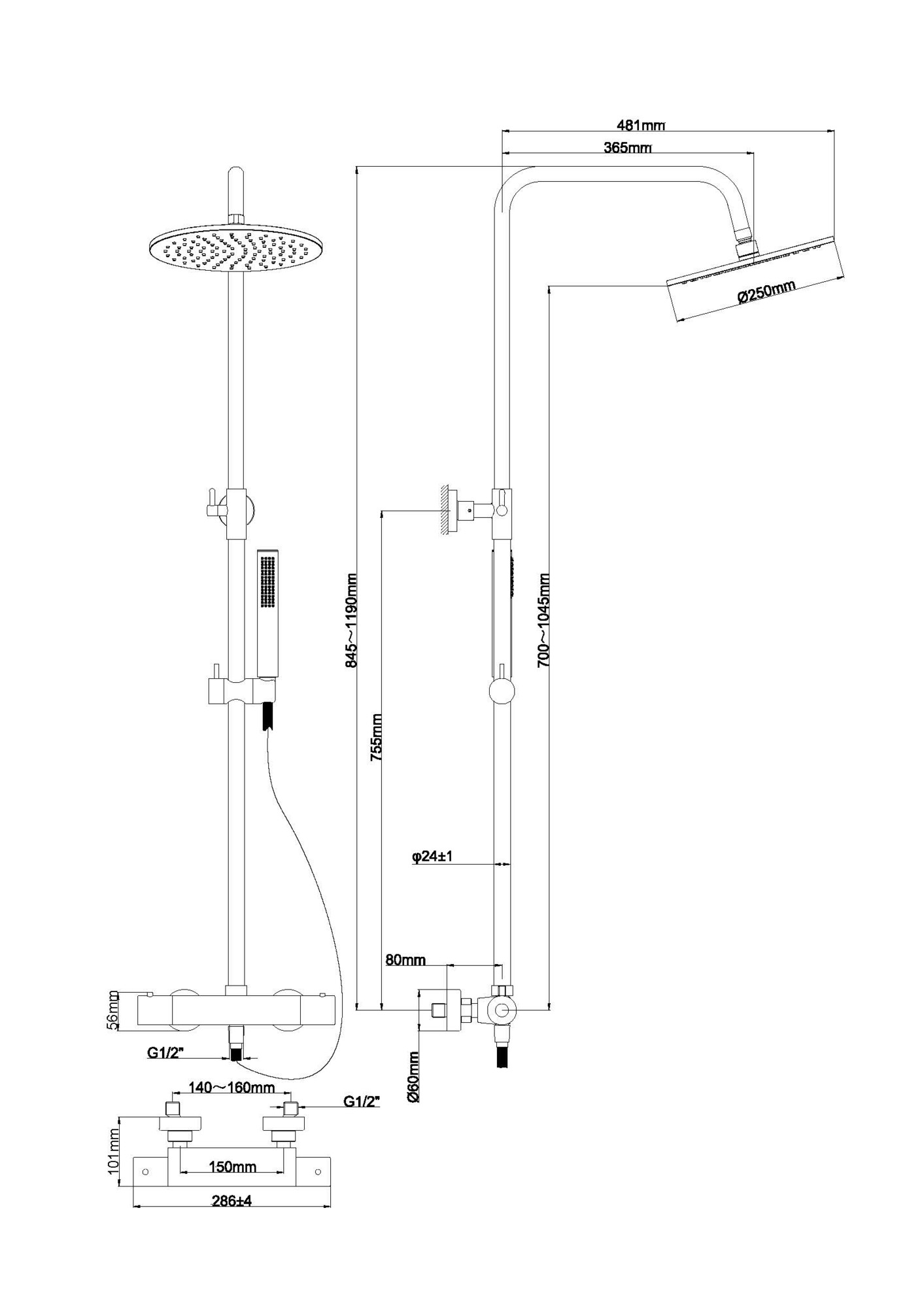 Wiesbaden Caral thermostatische regendoucheset opbouw chroom