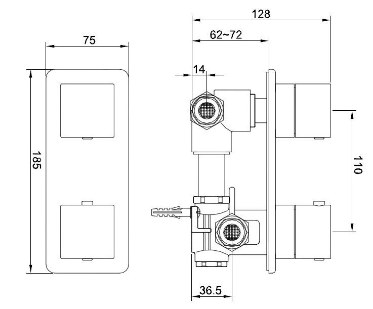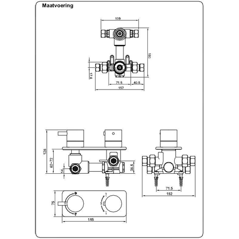 Xellanz Rombo inbouwthermostaat 2 weg chroom