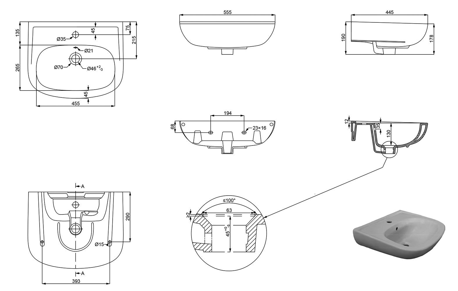 Xellanz Trevi wastafel 56 x 45 cm wit