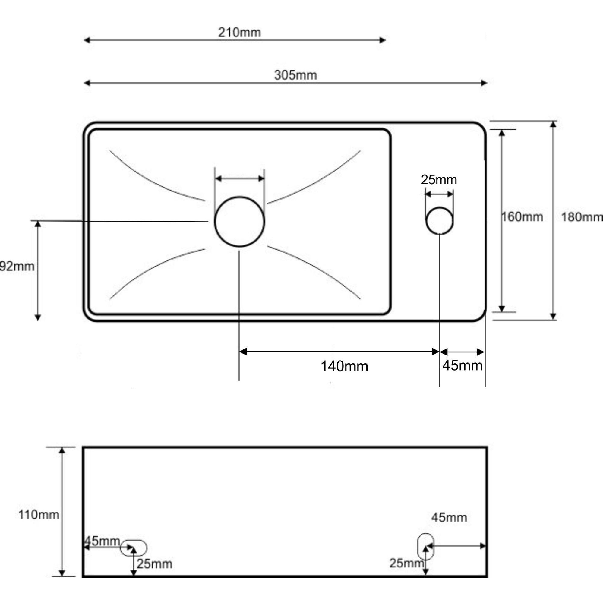 Wiesbaden Rhea xxs fontein rechts 30,5 x 18 x 11 cm keramiek glans wit