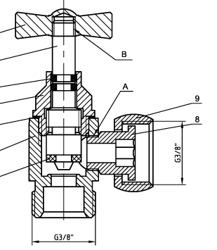 Riko Hoekstopkraan 3200 3/8x3/8Messing