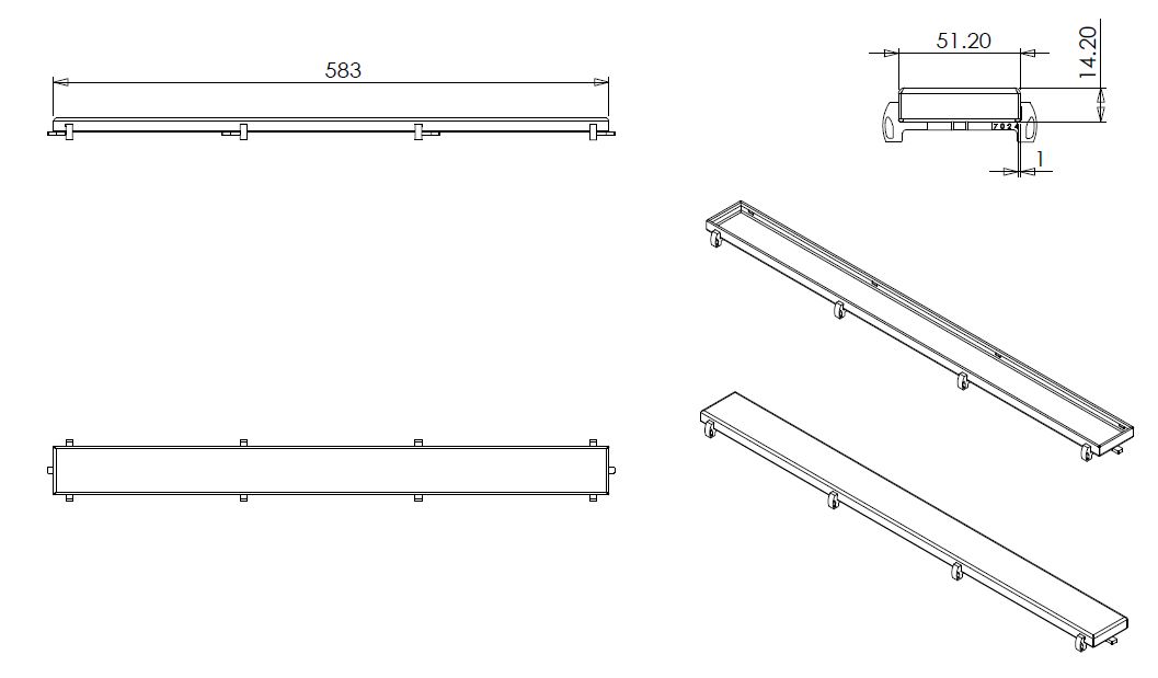 Wiesbaden tegelrooster voor douchegoot 60 x 7 cm RVS