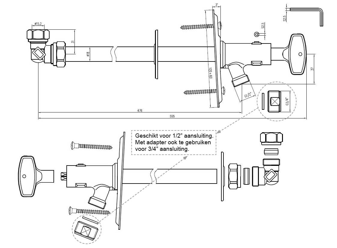 Riko Vorstbestendige Gevelkraancombinatie 15x3/4