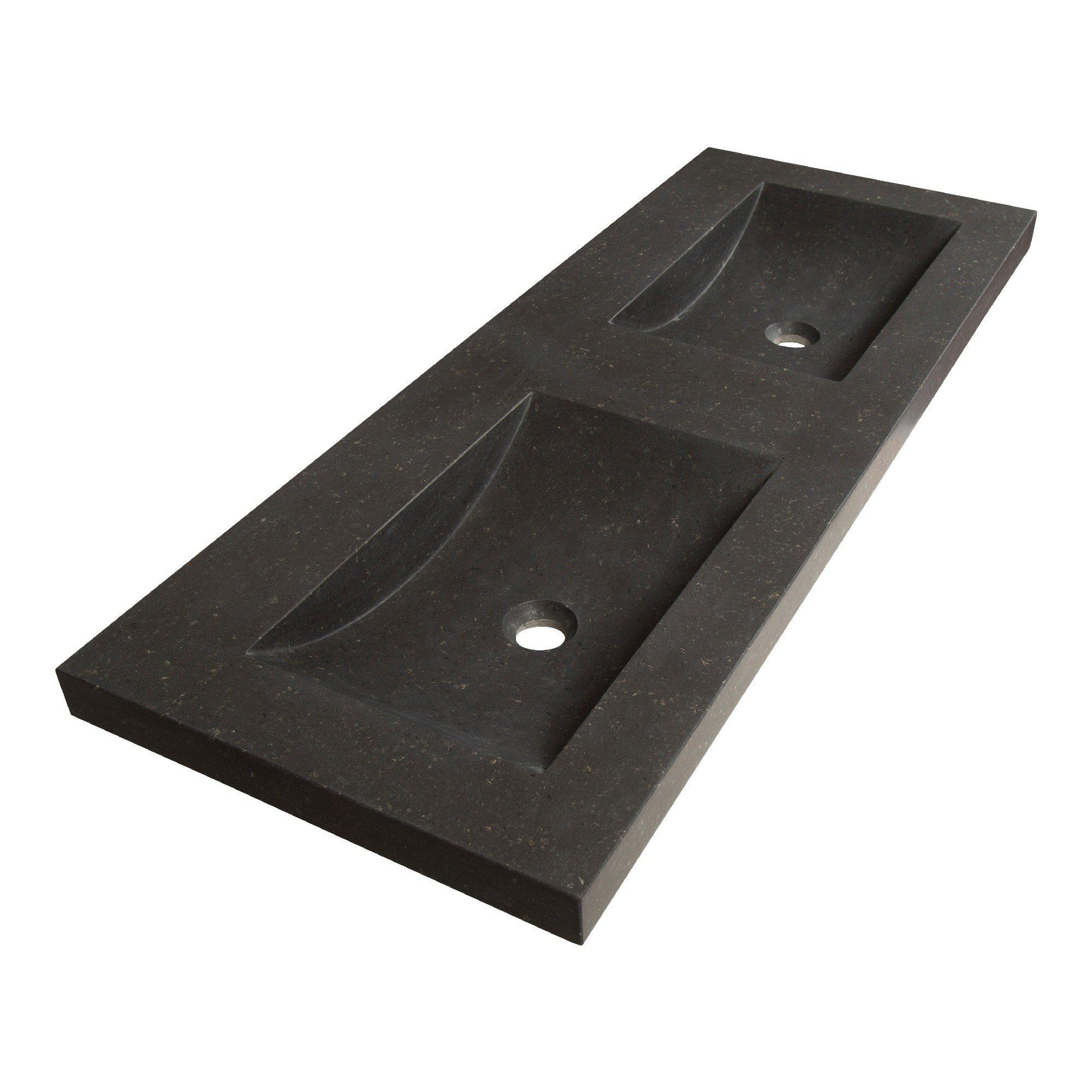 BRAUER Magma wastafel - 120x46x5cm - 2 wasbakken - 0 kraangaten - natuursteen - basalt antraciet