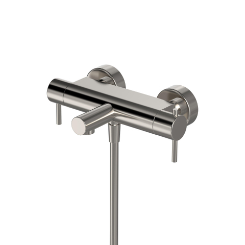 De Hotbath thermostatische badkraan beschikt over een rechte uitloop. De badkraan is makkelijk te verstellen in verschillende temperaturen, dankzij de thermostatische kraan en met de andere hendel te openen en te sluiten. De badkraan uitgevoerd in de kleur geborsteld nikkel.