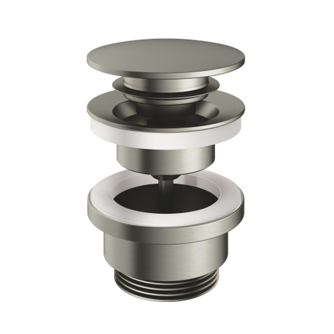 Hotbath clickwaste in de kleur geborsteld nikkel. De clickwaste kan tevens worden gesloten.