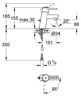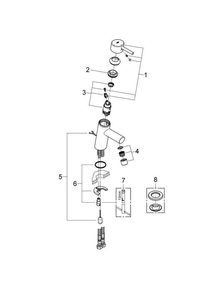 GROHE Concetto waterbesparendes wastafelkraan met inzinkbare ketting met 28mm ES cartouche chroom 2338110E