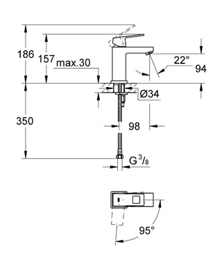 GROHE Eurocube waterbesparendes wastafelkraan met 28mm ES cartouche chroom