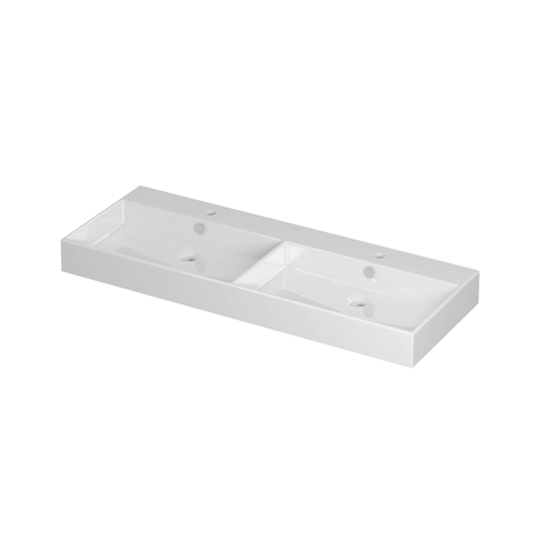 INK Unlimited wastafel - 120x45x11cm - 2 wasbakken - 2 kraangaten - porselein wit glans