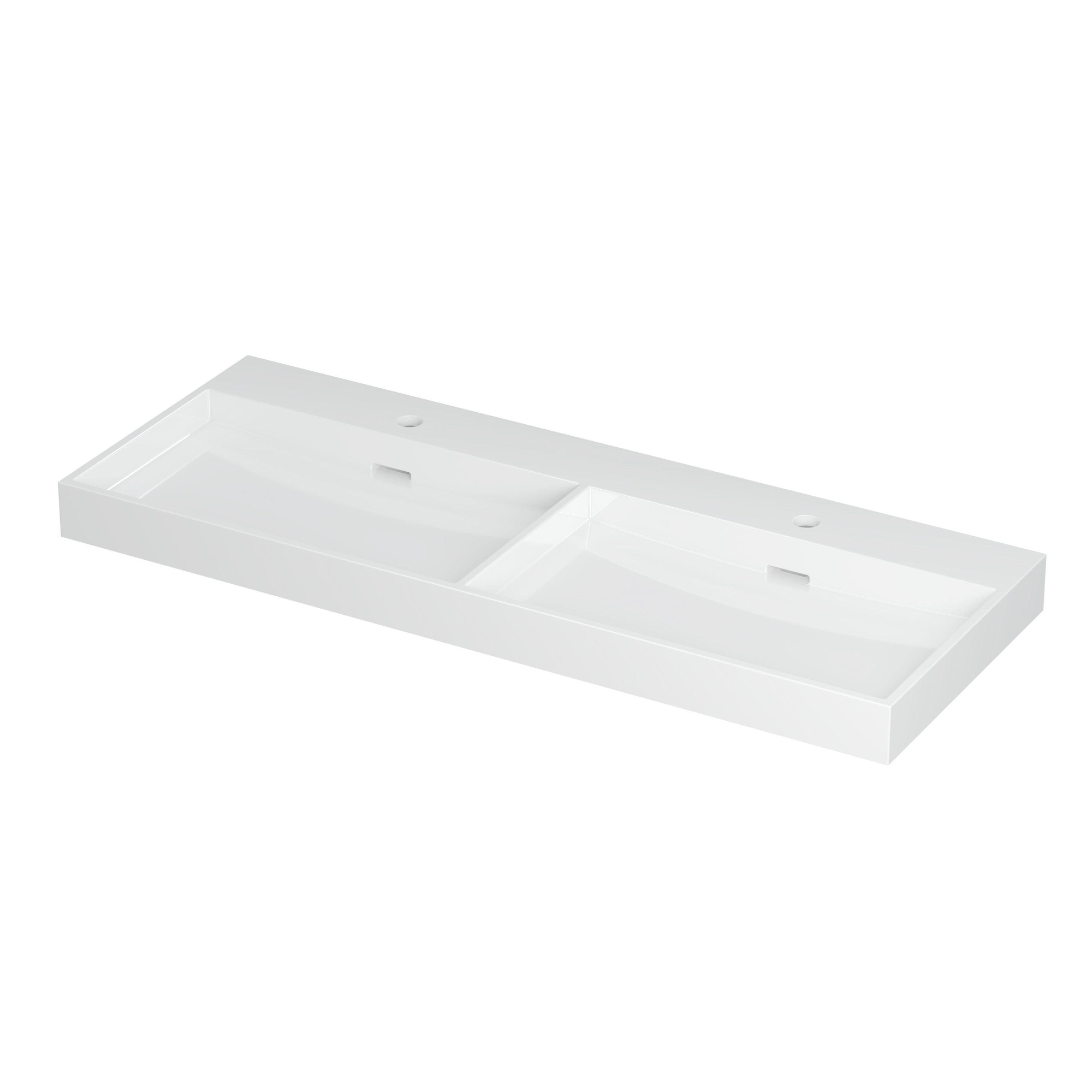 INK Urban wastafel - 120x45x8cm - 2 wasbakken - 2 kraangaten - porselein wit glans