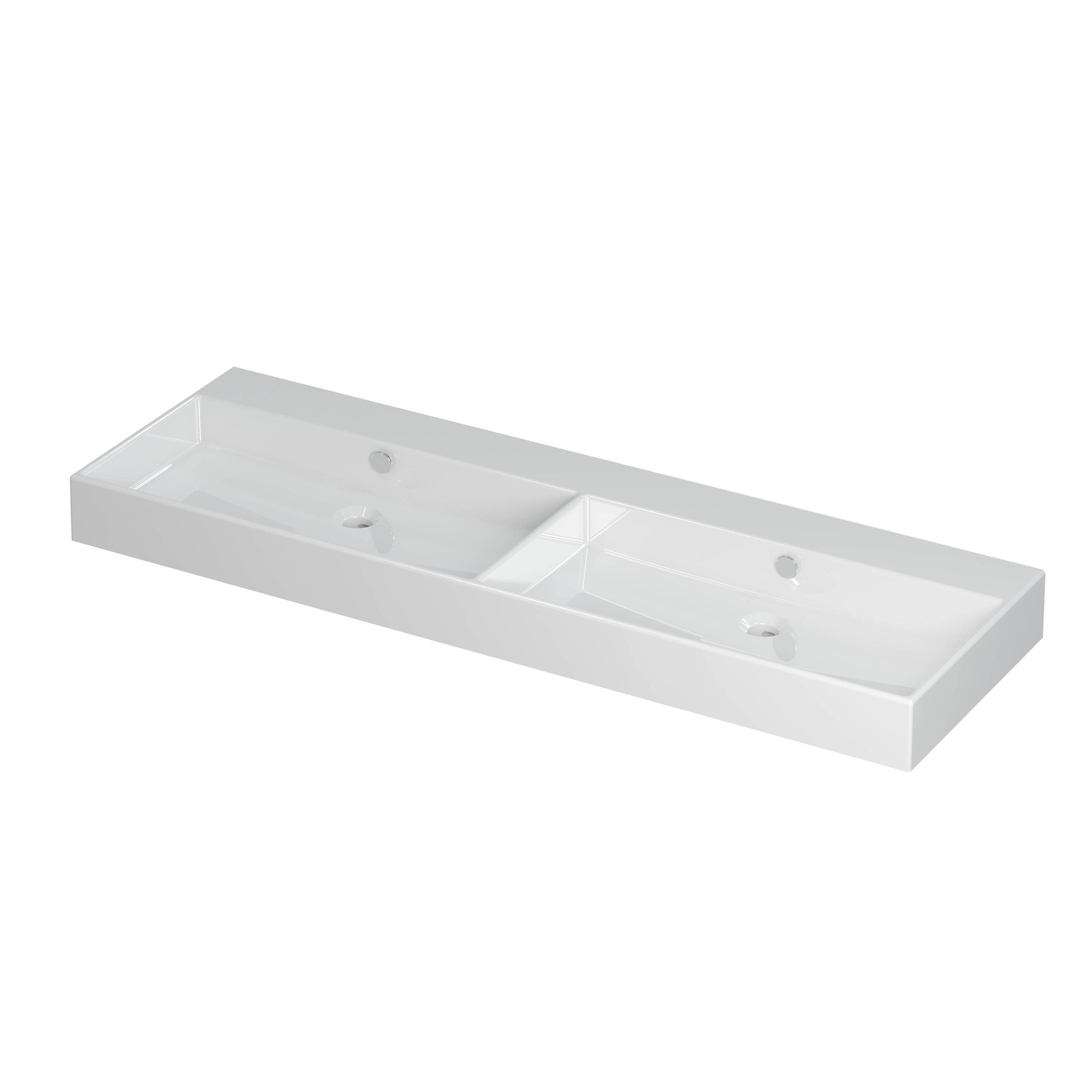 INK Unlimited wastafel - 140x45x11cm - 2 wasbakken - 0 kraangaten - porselein wit glans