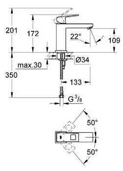 GROHE Eurocube waterbesparende wastafelkraan medium 28mm met temperatuurbegrenzer chroom