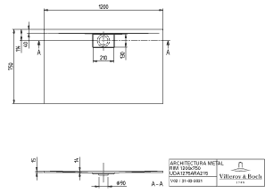 Villeroy & Boch Architectura Metalrim douchebak acryl rechthoekig 120x75x1.5cm alpine wit 1024723
