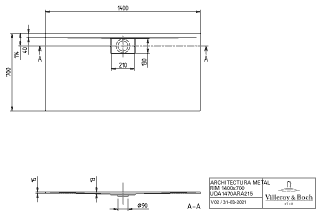 Villeroy & Boch Architectura Metalrim douchebak acryl rechthoekig 140x70x1.5cm alpine wit 1024729