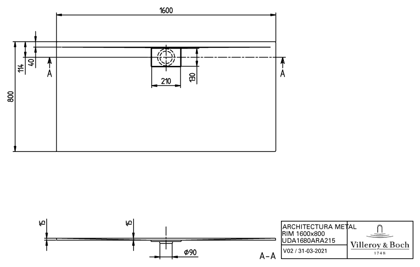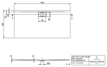 Villeroy & Boch Architectura Metalrim douchebak acryl rechthoekig 160x80x1.5cm alpine wit 1024747